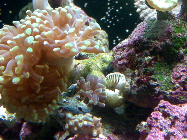 Det er min første stenkoral (har haft den i en go' uges tid), og jeg ved ikke om det er normalt at de kan skifte hovederne, eller om det er væk for evigt, om det er sygdom eller fordi korallen står forkert i baljen (står midt i mit RMS med middel flow omkring sig. De eneste dyr der er i baljen (som jeg kender til) er div. forskellige snegle.