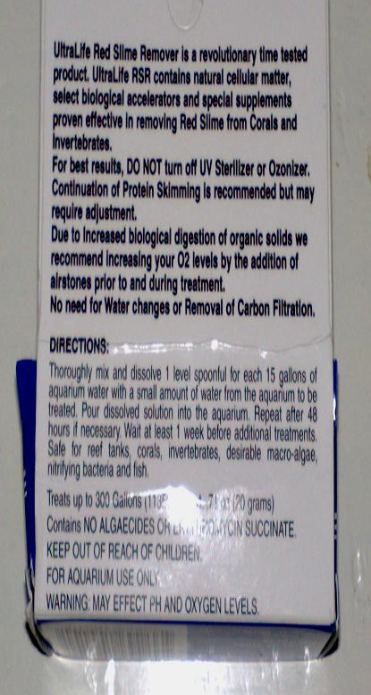 Vi har købt dette produkt for, at tage vores red slime, men hvor meget skal der i (baljen er på 128 liter), skal skummeren være slukket eller tændt... Spørger fordi der åbenbart er forskellige meninger ang. dette..
