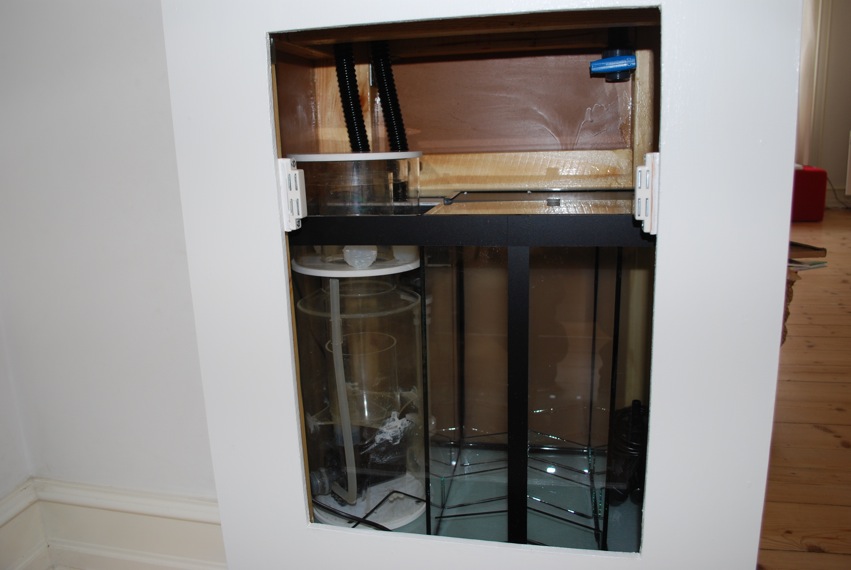 Så er bordet snart bygget færdigt (mangler lister, etc.) og der mangler lyskasse. Sump, akvarie, baggrund og skummer, returpumpe lys, cirkulation er leveret og installeret og der holder bare maks (tror jeg, det kører jo ikke endnu). Jeg er ihvertfald mere end tilfreds her 4 uger efter start og 13000 kroner fattigere. Nu glæder jeg mig fandeme til at få vand i og få møbleret med indhold fra mit lille akvarie.