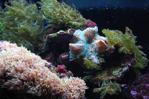 01-04-2009 Så kom de første koraler i akvariet efter et besøg hos Joachim i Petsupply. Caulastrea sp., sarcopython sp., Oxypora og en Maxima musling…..og der kom da også en lille Scooter blennie med hjem. Ud over det, fik jeg også bestilt lidt koraler/anemoner i Tyskland. Dejligt med lidt mere farve i tanken.