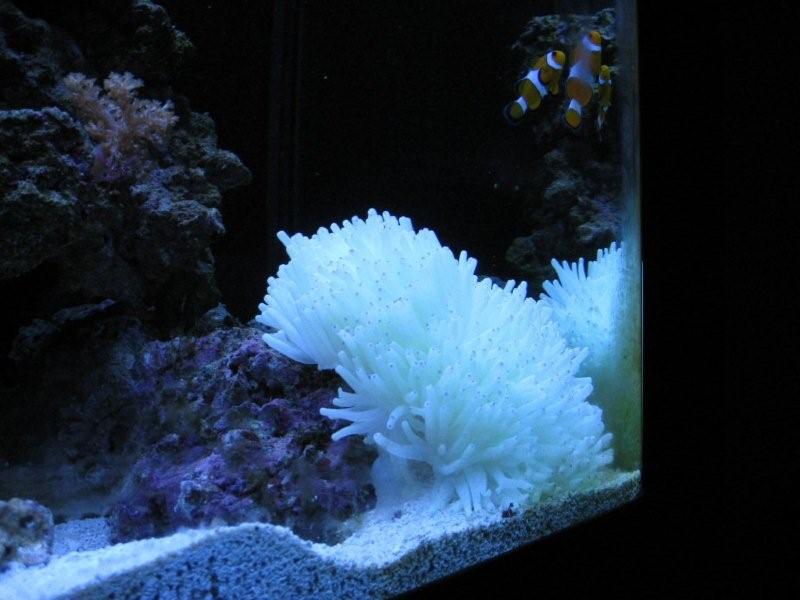 Jeg bruger osmosevand til at fylde baljen med og skifter vandet ca. 10 % om ugen (udover fordampning på omkring 18 liter om ugen). Nitrit og Ammoniak har hele tiden været stortset på 0, PH og KH stabilt - men nitrat har ligget på ca. 50 og er nu faldet til 30. Jeg har ikke haft mega algeboom, men det er kommet lidt efter lidt på hver sten.