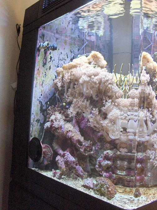 En anden detalje er om du har nok cirkulation i akvariet. Din stenopsætning ser godt ud, men der vil komme problemer med mangel af cirkulation bag dine sten. Jeg har selv en koralia pumpe placeret nederst i venstre side, som blæser vand igennem stenopsætningen og ud på den anden side af akvariet.
