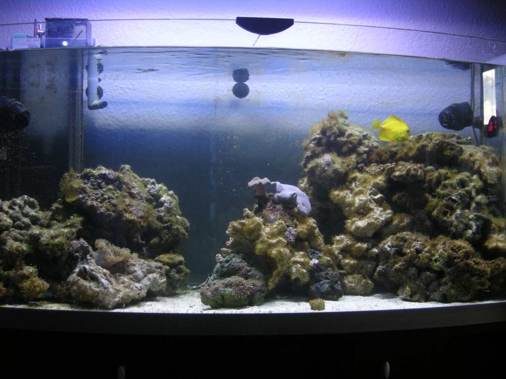 Det Carsten mener er: At du skal tømme alt vandet ud, og simpelthen starte HELT forfra. Altså tag stenene op og læg dem i en balge, ellers så de ligger fugtigt. Bland noget vand. Sørg for at det er opløst helt, og så ligger du stenene op i igen, som du vil have dem. VENT så til alle algerne er væk :y Du skal først have brunalger, så kommer grøn alger, de skal først være på retur, og No2, No3, pH, Po4 skal være iorden før, at du kan begynde at tænke på fisk. Jo længere tid du venter selvom dine alger er væk jo bedre :GO