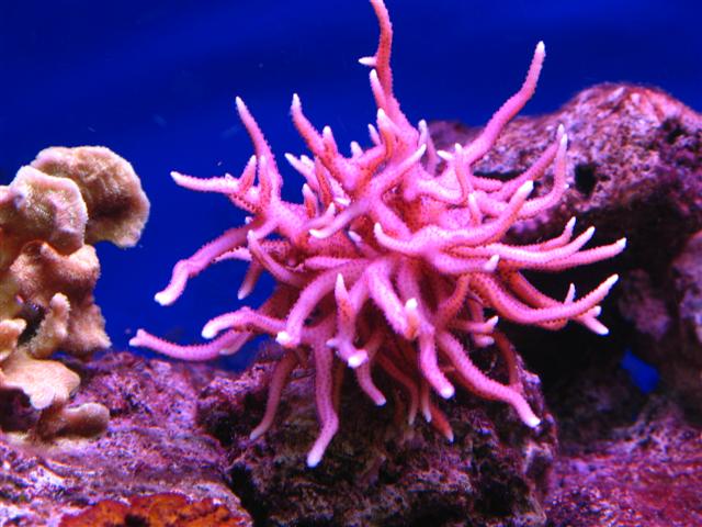 T1000 Pink Hystrix er den grenstump jeg fik af dig da jeg købte dit Tunze Powerhead. I lang tid efter overlevede den kun med nød og næppe....men efter at have fået mere styr på at holde saltvand er den eksploderet og den vokser nu synligt fra dag til dag.