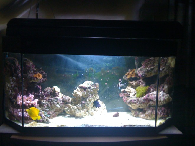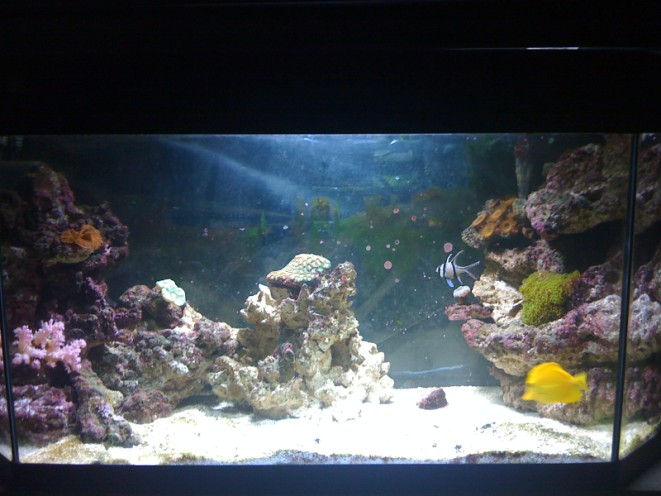 Der er ikke taget billeder med HQI'en tændt endnu - men det kommer, skal også have skiftet det ene T5 rør med et mere blåt et. og et tunz nano powerhead til at smide ned mellem stene