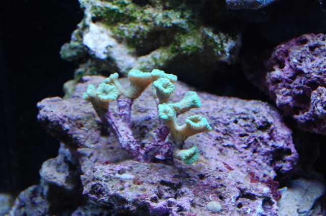 01-04-2009 Så kom de første koraler i akvariet efter et besøg hos Joachim i Petsupply. Caulastrea sp., sarcopython sp., Oxypora og en Maxima musling…..og der kom da også en lille Scooter blennie med hjem. Ud over det, fik jeg også bestilt lidt koraler/anemoner i Tyskland. Dejligt med lidt mere farve i tanken.