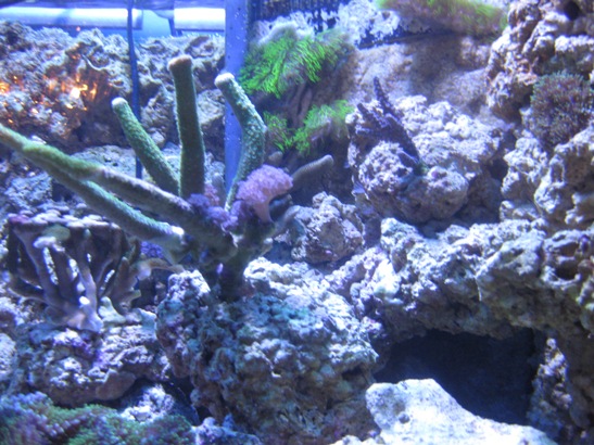 Der er sket lidt i baljen, udover de beboere der er tilføjet (se billederne) så har jeg sat yderligere 4x24w over baljen. De blev til 2x fiji pink og 2x alm. hvid. Grunden til de hvide, er at jeg ikke syntes min HQI nåede ud i hjørnerne af akvariet. Og jeg må da selv sige, at det bestemt har hjulpet. Derudover har min acrapora begyndt at folde sig ud på samtlige sider, i stedet for kun den side der pegede mod HQI'en.