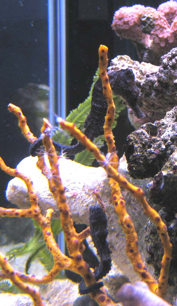 Så er der lidt nyt. Søhestene har det fint, de spiser rigtigt fint. Jeg har fået to nye søheste Hippocampus Kuda, det er meningen de skal i mit 300 liter, når min picasso skal videre. De var meget trætte da de kom, så jeg satte dem sammen med mine andre søheste i stedet for i karantæneakvariet og det fungerer fint, de hygger sig sammen.