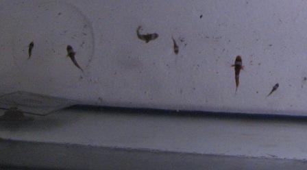 Dag 41, Ingen døde og ved nærmer efter tælling er der 43 stk. så en mere end sidste tælling. De er nu begyndt at spise knust tørfoder og deres kost består i skiftevis 2 dage med tør og 2 dage med levende.