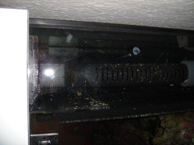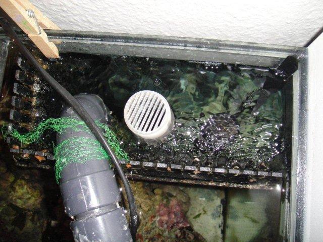 Jeg har en forbandet dannebrogsreje der bliver ved med at smutte ned i overløbet! Der er ”runde riste” (dårligt ordvalg) omkring returrør til sumpen så rejen bliver ikke suget med ned i røret. Nu kravler den rundt på rørene i overløbskassen, og her skal den jo ikke være når jeg har investeret i den, så skal den jo stå mit i akvariet og danse tango eller hvad det nu sådan en reje gør.