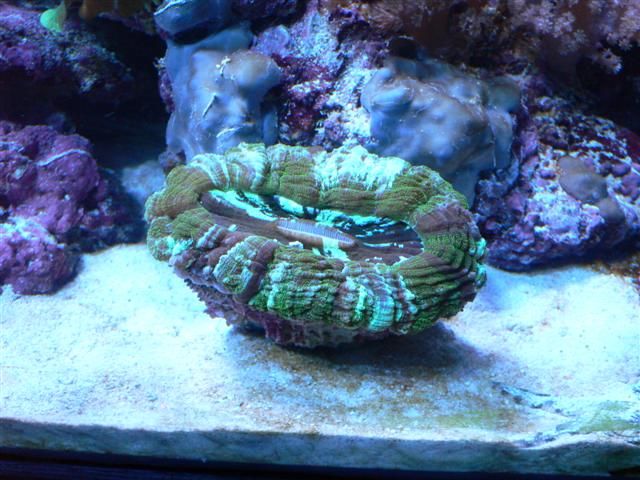 Den er desuden begyndt at slagte en montipora. Ser lige hvordan det udvikler sig det er umidelbart kun der hvor den opholder sig mest tror det er for at skaffe sig mere svømmeplads, men lad nu se hvis det er det eneste så får den lov at blive..