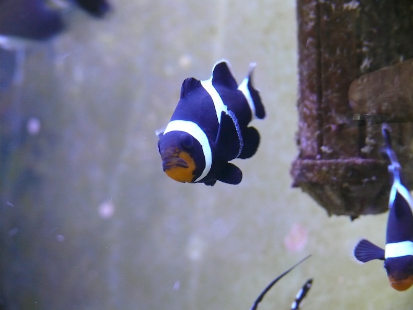 Jeg har lige taget lidt billeder af de fire klovnfisk, som desværre ikke er spor interesseret i de fire anemoner som står til deres rådighed.