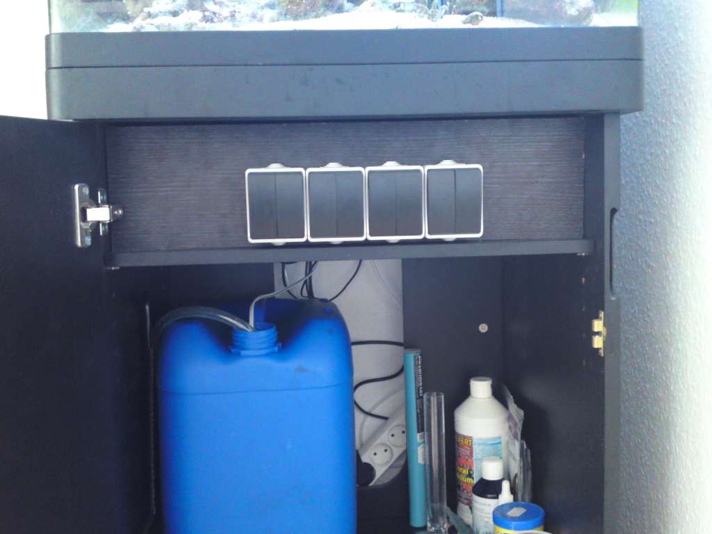Grundet placeringen af akvariet, inde i et hjørne, er hele strømforsyningen ombygget og flyttet ind i underskabet.
