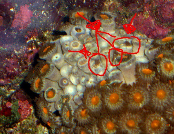 de plejer jo at være 100% åbne alle sammen... men pletten er lissom blevet større, og de der er lukkede, har lidt brun " hår" hængende ud af polypperne...