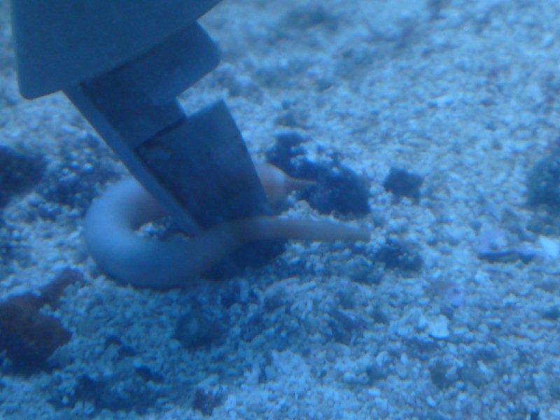 Jeg er ved at tømme det sidste i akvariet. Og der kom den fyr her svømmende. Den er ca. 10 cm lang og 1 cm i diameter. og så i løbet af få sekunder er den 30 -40 cm lang og 2 mm tyk. Hvis man sætter en pind ned til den holder den fast om den og kunne løftes op i nettet. Men! Hvad er det???