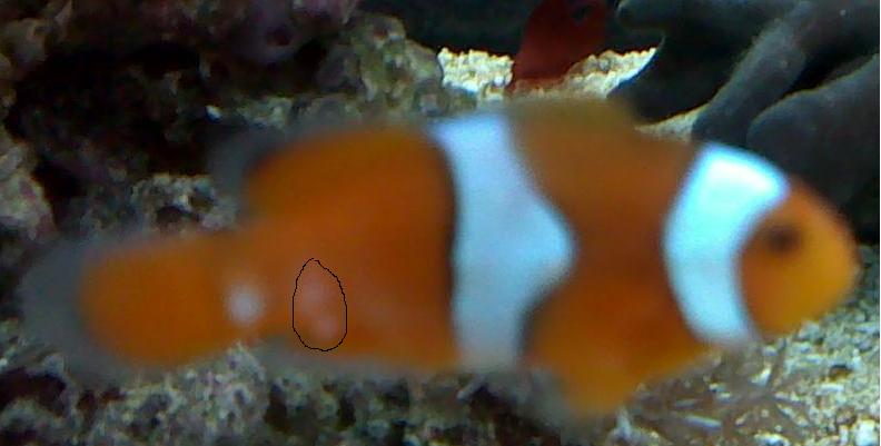 Re: Klovnefisk med hvide "vækster" og lidt mat farve
