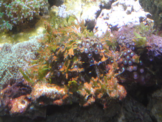 et ander spørgsmål jeg har, er ; hvad er det for nogle brune små stykker der sidder fast overalt på sten grus og koraller ?