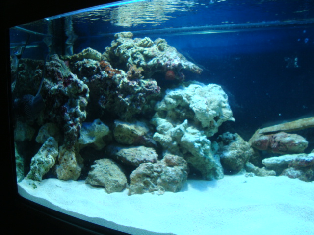 Jeg startede med ferskvand for 10 år siden og sluttede af med malawi-chichlider for 3 år siden og har siden ikke haft vand i stuen. Jeg har nu fået lidt mere tid igen og denne gang skulle det så være saltvand der skulle indefor at stå. Jeg startede med et 250L for 1½ mdr siden og kunne med det samme se at det var sq for småt. Der er nu indkøbt et 450L og alle LS fra 250L + 65 kg LS er blevet lagt over i, sammen med vandet fra 250L.