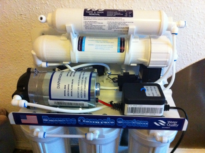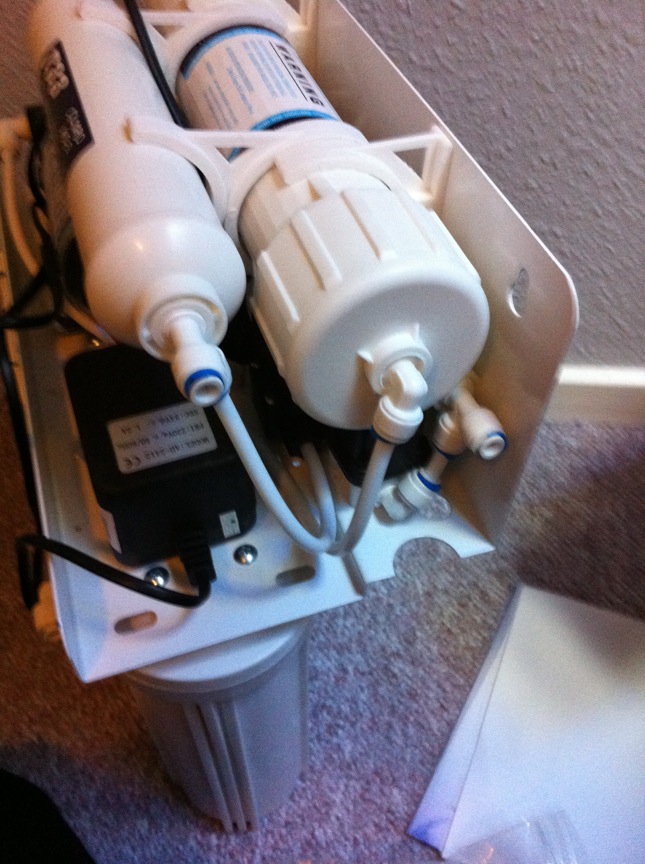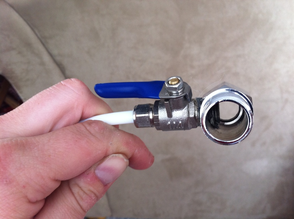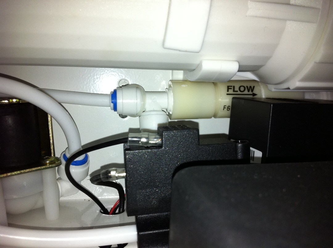 Prøv at tage et stor oversigtsbillede af anlægget. På mit gamle rowa anlæg sad skølleventilen lige efter osmose membranen og på den slange som fører til kloaken, spildevand, som Carsten også siger. Den på billedet ovenfor kunne sagtes være en skølleventil som skal sidde efter anlægget/ RO-membranen.