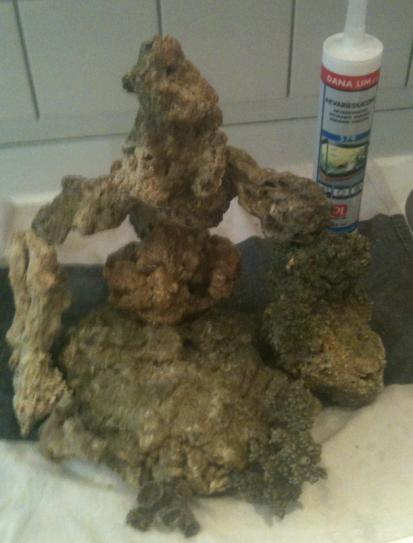 Prøver selv at lave lidt reef keramik opstilling af lidt døde sten- Ideen var at lave noget med nogen huller som fiskene kan svømme igennem - samt være et sted at fastgøre koraller eller anemoner - så de ikke kan flytte sig over sandet etc.