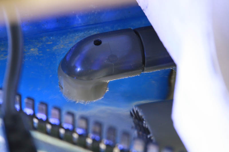Er det ikke bare at tømme de par l vand af akvariet så det ikke løber over overløbs kammen mere og så skue hele rør førings af og købe en ny der kan sidde på inder siden? Det kam da maks koster 100 kr i pvc og så er det vel ikk mange l vand Der skal af for at vandstanden kommer under overløbs kammen?
