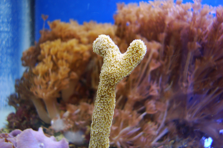 Fragment i venstre side af akvariet med polypperne uden trods det dårlige lys... - Tror dog heller ikke den ville kunne klare det i længden...