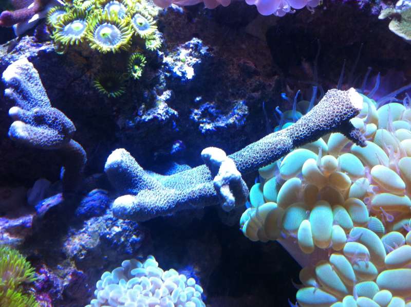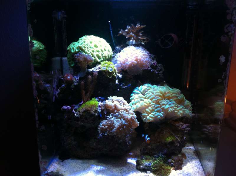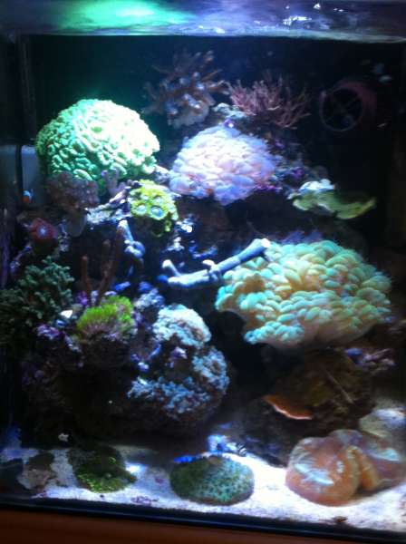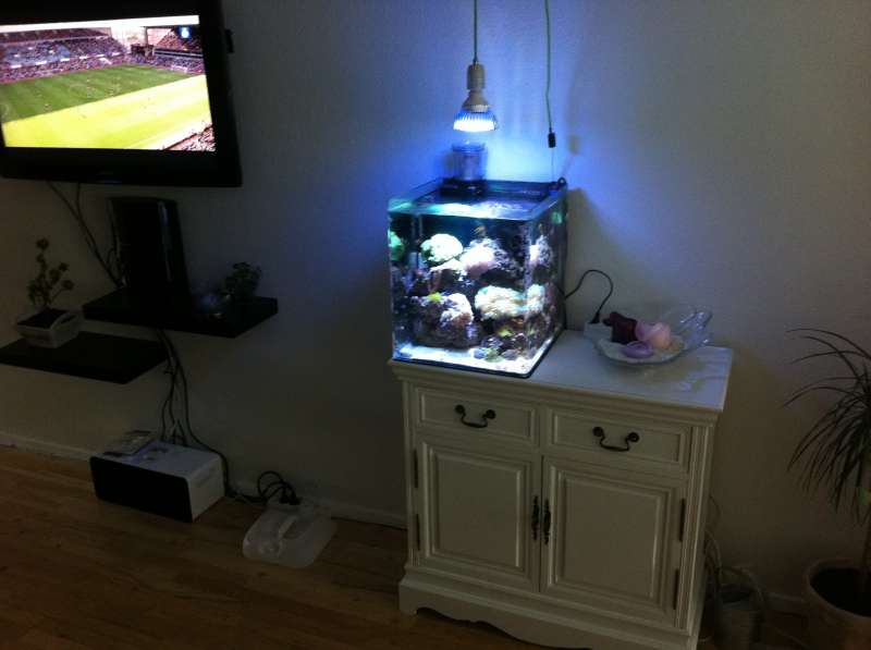 Det har kørt i godt 4 mdr og korallerne stortrives så de vokser da også en del :) Af fisk har jeg to almindelige klovne og en dannebros reje..