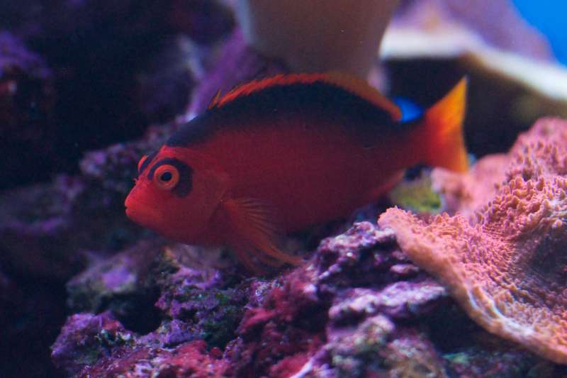 Det er en pseudochromis springeri. En forbandet %#~%%#*# at få et fornuftigt billede af.