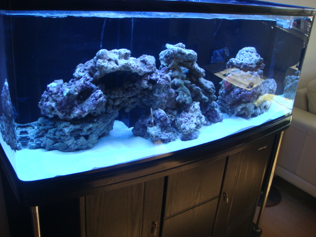 1: fiskene skal have et sted hvor de kan gemme sig og jo det kan de også i din godt nok, men desværre alt for godt. Her mener jeg at hvis en fisk bliver syg lægger den sig ikke til at dø fremme, men gemt væk i stenene. Eks en gul kirurg størrelse L bag nogle sten fyldt med koraller er ikke så fedt. Den rådner op og smadrer baljen.