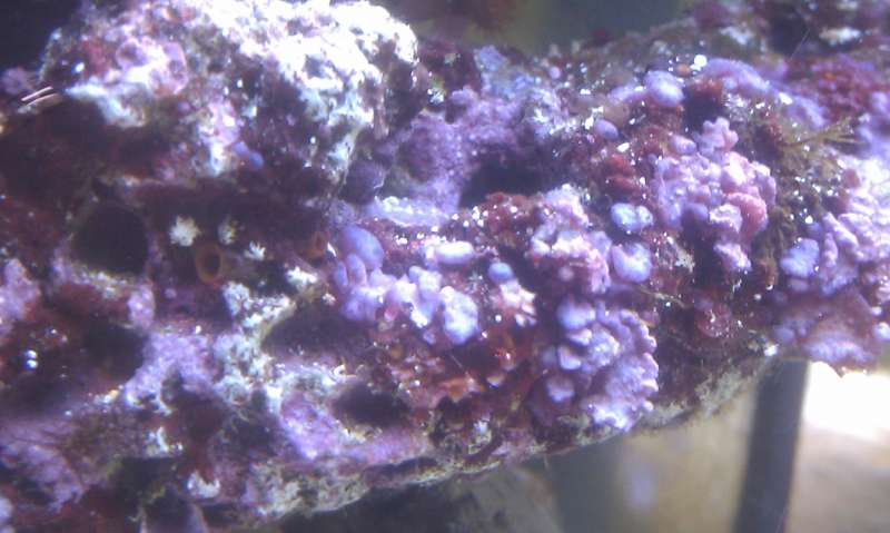 det der røde kalk noget det er meget tydeligt på billede 7 under den lille læderkoral, og det ses også på billede 3. Min mobil kan desværre ikke zoome længere ind