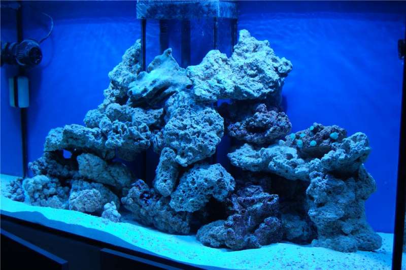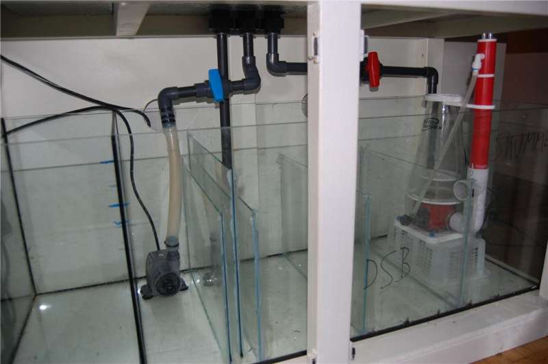 sump 120x45x45 = 243 liter , delt i 5 rum , hvoraf de 50 liter er lavet til osmose.