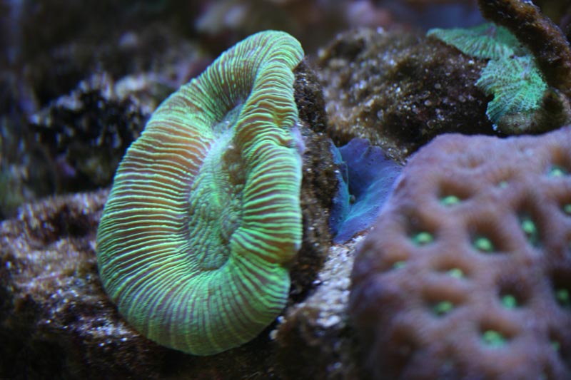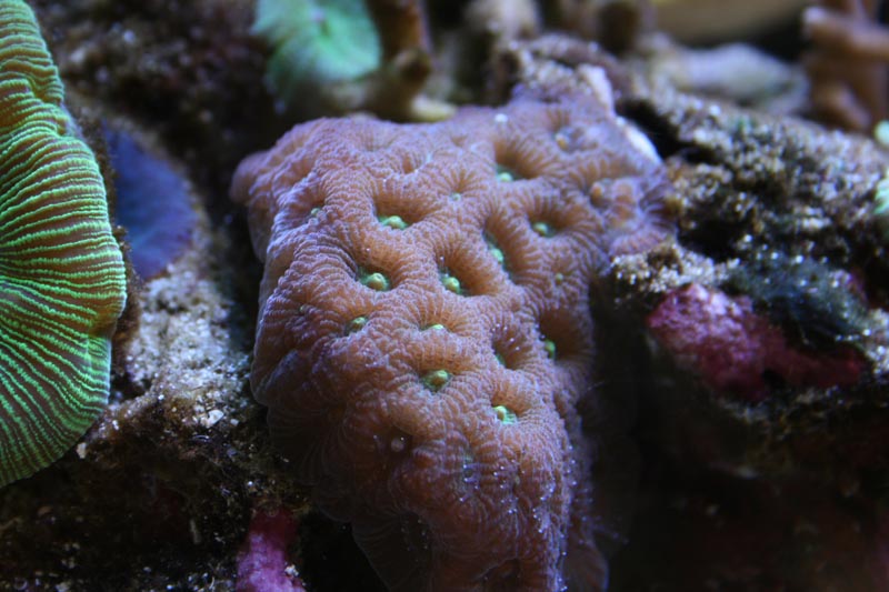 Mine SPS farver er ikke hvad de har været. De blev lidt mere brune efter at jeg havde stresset akvariet med omrokeringen. Forhåbentligt kommer det tilbage.