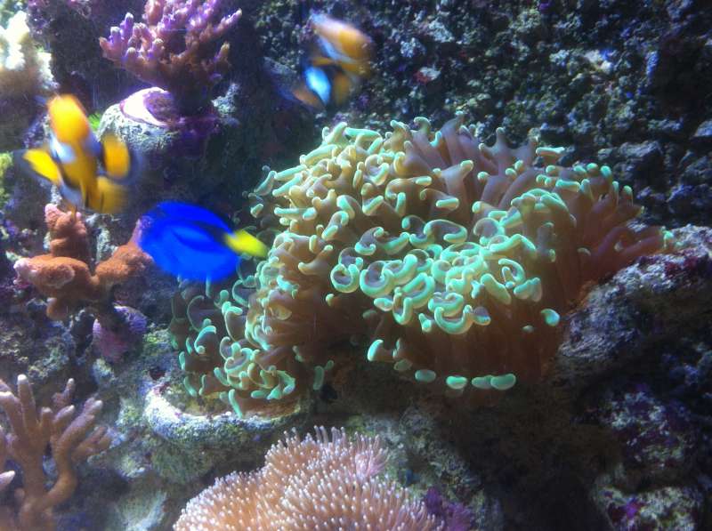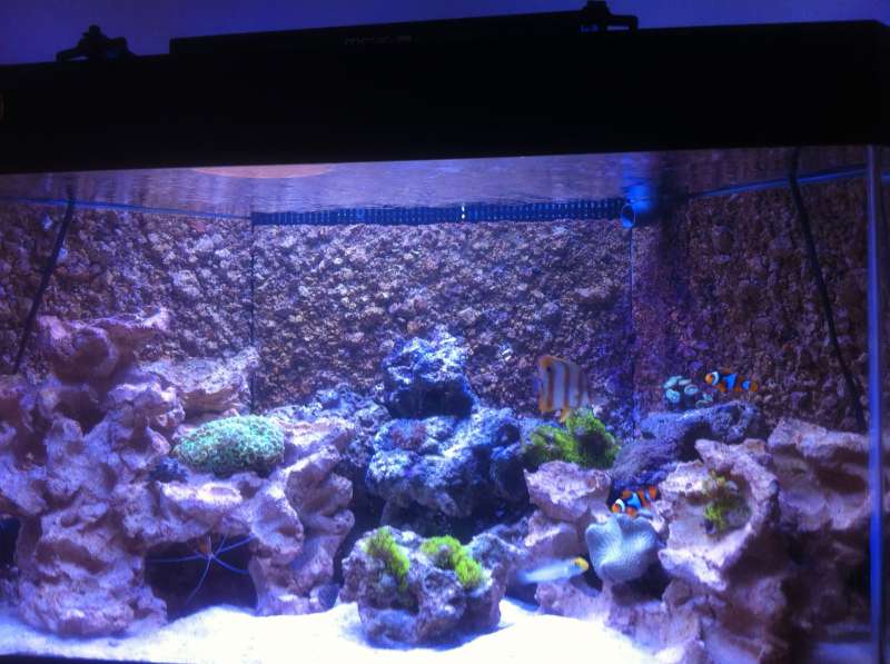 Tanken køre fint, har dog fået lidt grønne meget standhaftige alger som sætter sig på baggrunden og som små pletter på ruden. Har du på det seneste oplevet rigtig meget vækst på min acro så det er en sand fornøjelse. Den er blandt andet begyndet at vokse ud over koralvoksen :) Mine blå leds i lampen er desværre gået i stykker så det hele ser lidt hvidt ud desværre.