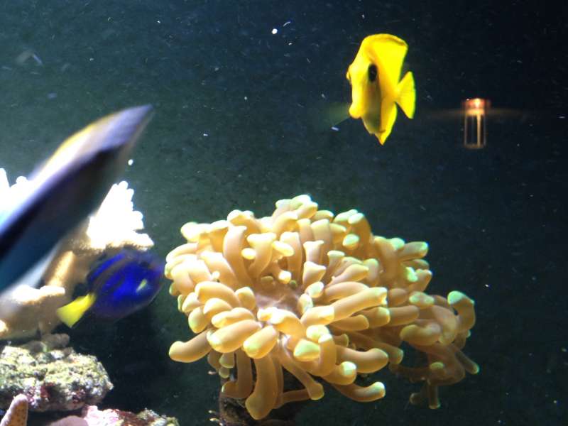Da nitrat og fosfat har ligget så højt, har jg været lidt tilbageholdende med Nori. De har dog fået lidt Nori en enkelt gang siden jeg fik den gule, men heller ikke det spiste den noget som helst af. Ellers har jeg kun fodret med flager. I dag spiste den som sagt en lille smule flager for første gang. Jeg satte også en lille klat reef pasta på ruden og jeg tror også den tog en lille bitte smule af det.