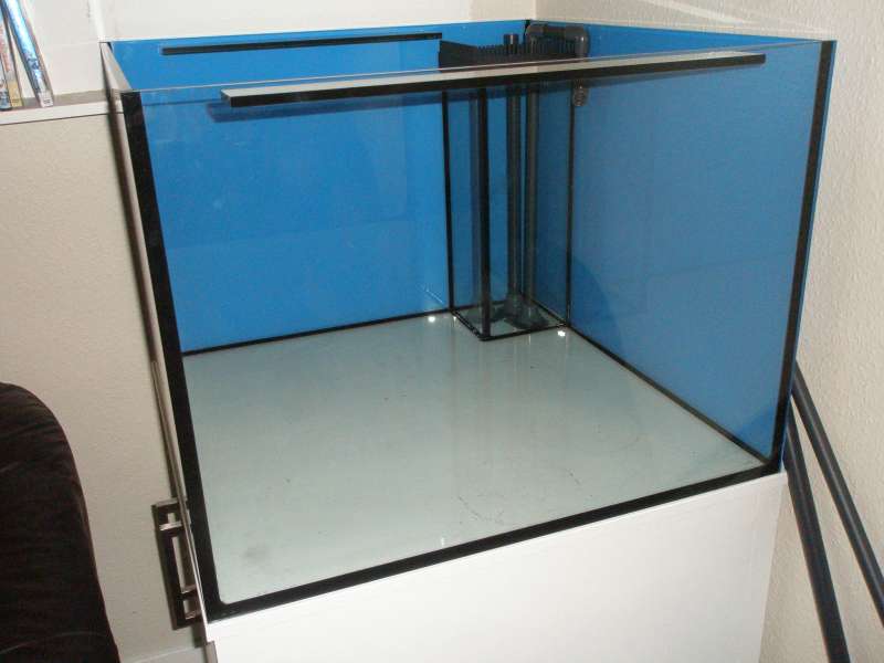 Så blev tiden til opgradering :) Derfor startede jeg med at bestille et akvarium i målene 75x75x55 cm med opti-white glas på fronterne mod stuen. Dernæst fik jeg byggede mig et bord og sat låger i...