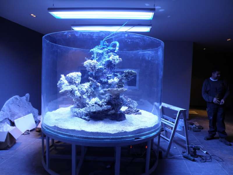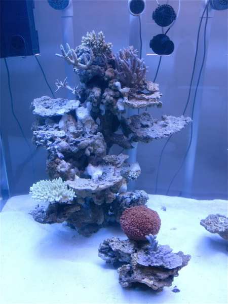 Jeg er sikker på at Carsten nok skal finde en god løsning - og din ide var sku da ikke helt hen i vejret! - kan være cirkulations pumperne skal dækkes af noget reef ceramic og ledningerne gå oppe fra lyskassen ned i midten.. men nu må vi se.