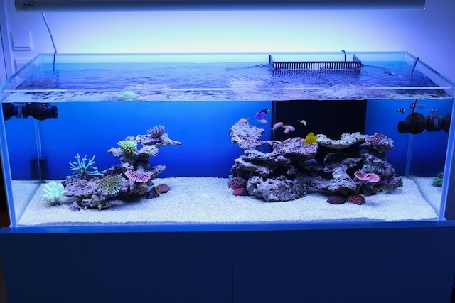 Jeg er sikker på at Carsten nok skal finde en god løsning - og din ide var sku da ikke helt hen i vejret! - kan være cirkulations pumperne skal dækkes af noget reef ceramic og ledningerne gå oppe fra lyskassen ned i midten.. men nu må vi se.