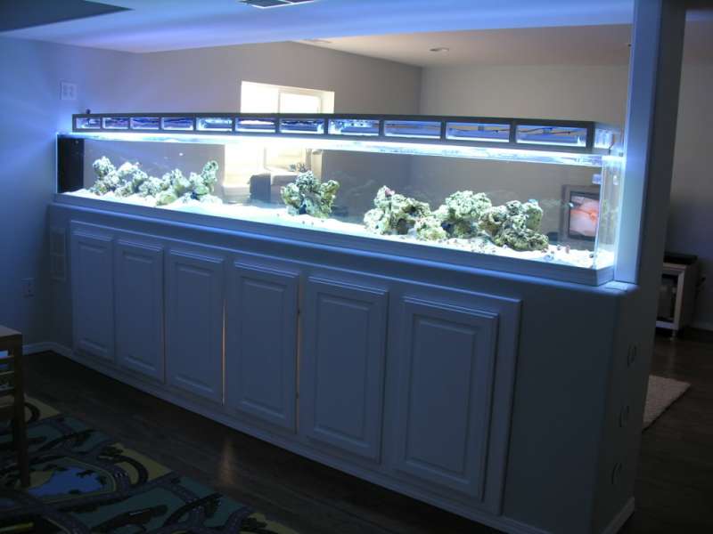 Akvariet skal stå alene op af en hvid væg der er 4.45M lang og 2.60M til loftet.