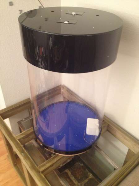 har lavet en gennemføring og sat en ø40 blød slange på til vand ned til sumpen. inde i den på ø40 går der en mindre slange til returpumpen. disse går begge til toppen af akvariet og har så sat et plexi rør ud over for at holde det oprejst. Planen er at bruge pu skum til at dække røret ind og til opbygningen af stensøjlen. så alt teknik bliver skjult 100% . Har en sump på 200 ltr hvor der kun skal være l.s. i så regner ikke med at have nogen af dem i cylinderakvariet. Der skal nok komme mere. men tid og skole gør at processen er i sneglefart desværre ;)