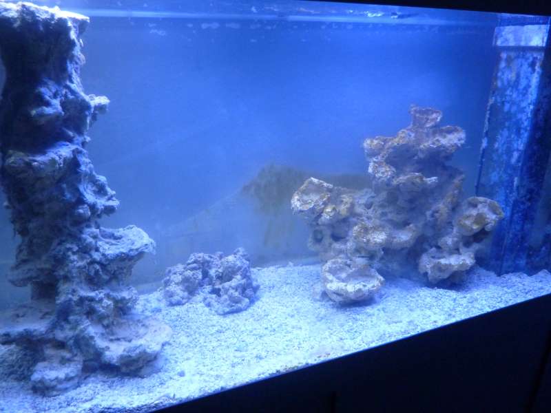 hugo, men den er desværre allerede afgået ved døden og jeg er ret sikker på den blev stresset ihjel. Den virkede i hvert fald ikke helt ligeså på toppen som den var ved Carsten da jeg kom hjem med den. Den lå på siden i posen den første halve time under tilvænningen, men endte med at ligge normalt inden den blev sluppet fri. Den svømmede også lidt rundt i akvariet, og så faktisk ud til at have det fint, men da jeg lige skulle omplacere anemonen, smed den sig om på siden igen. Det skal siges at temperaturen da fiskene blev lukket ud, lå på omkring 24 grader idet jeg var nødt til at justere saltindholdet ned fra 1,028 (målt med refraktometer), og det har nok heller ikke hjulpet på sagen. Jeg forsøgte at redde den ved at flytte den ned i sumpen hvor cirkulationen er lidt mildere, men desværre overlevede han ikke