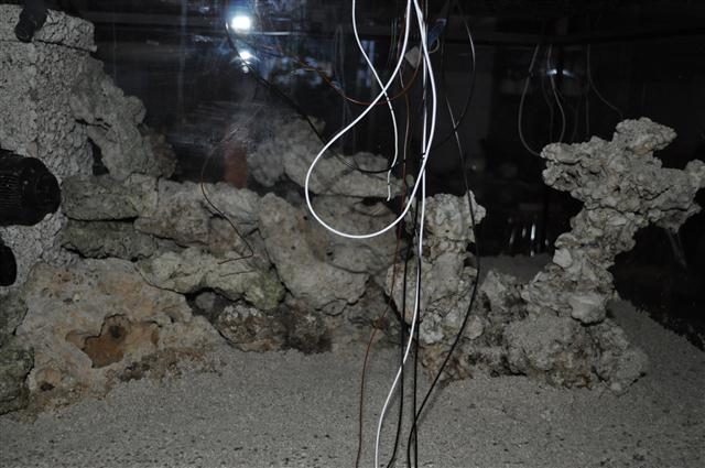 Da jeg igår kom vand på akvariet - osmosevand- lagde jeg mærke til at der lige som var et springlag, nederst var vandet mørkere og mere uklart. Det må skyldes at skidt og øg fra de døde tørre sten er blevet opløst og siver ud i vandet.