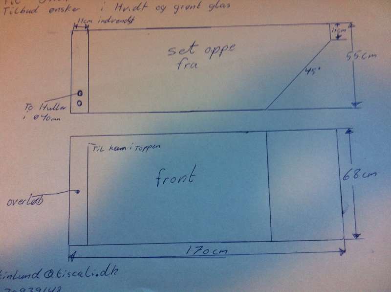 ca mål H68 D55 L170 og højre side skal være i 45grader