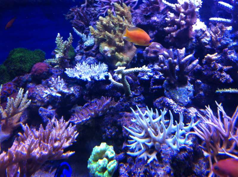Men tror vi ender med at beholde de to lamper vi har, og så placere dem over stensætningen så vi får to platoer til lyskrævende acroporaer, og nogle "udkanter" hvor de knap så lyskrævende koraller kan stå. Kan se at vores acanstreaer er blevet helt pjattede i farverne efter de er kommet til at stå i halvskygge i stedet for lys, så planen er at få lavet mange "forskellige" områder hvor forskellige korallerne kan have det så optimalt som muligt.