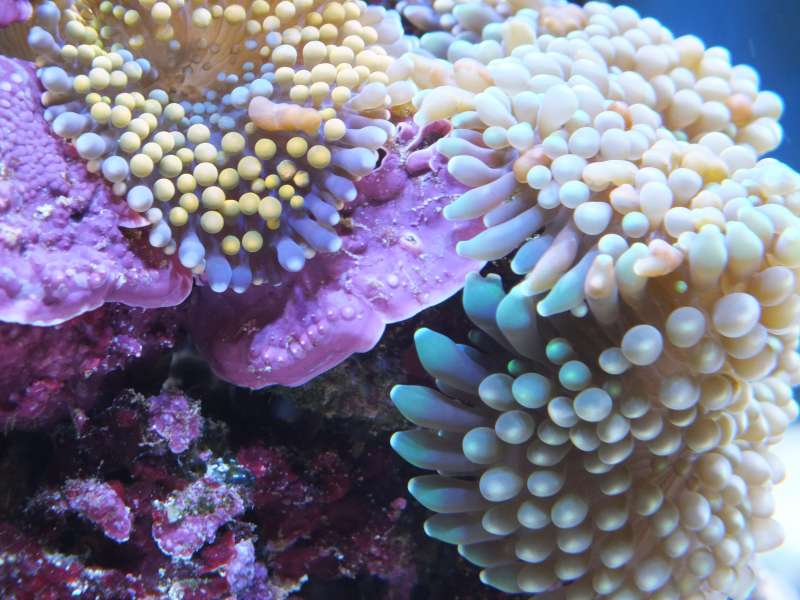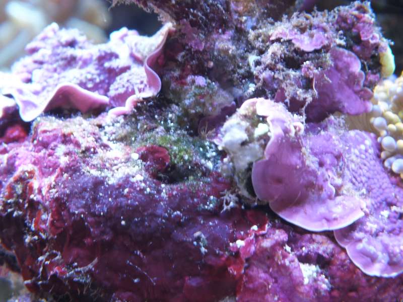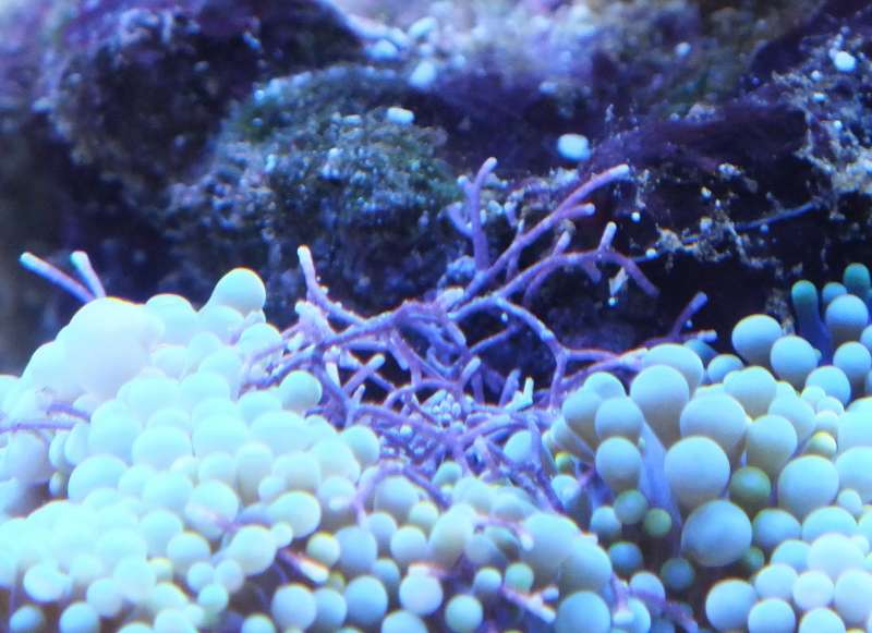 2) Kan kalkalger antage en grenet form? Eller er det noget helt andet der er kommet mellem disse blå Ricordea? (billedet er ikke særlig godt men det har præcis samme lilla farve som kalkalgerne på de første billeder)