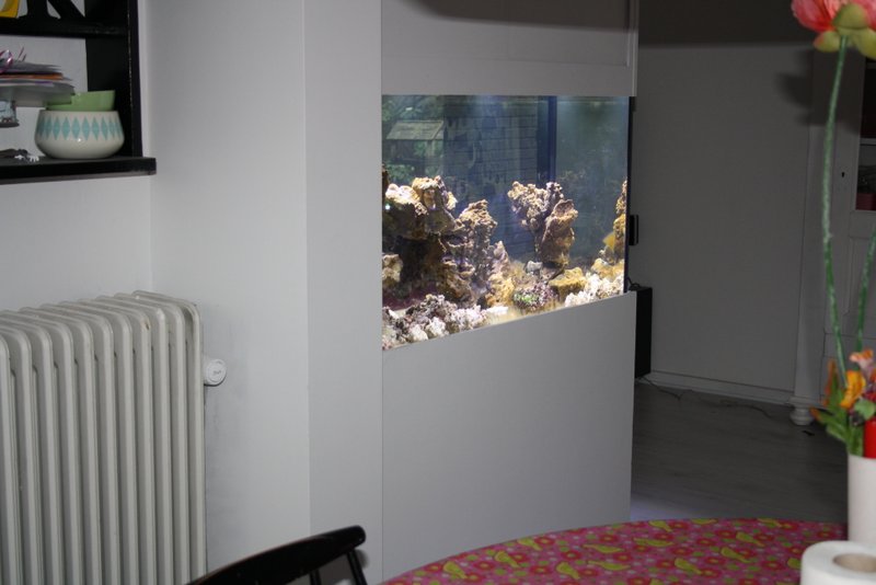 Det er jo en rumdeler og jeg skal have i tankerne hvor jeg vil have placeret koraller i fremtiden. Min plan er stadig at have softies, skiver og polypper med lidt LPS.