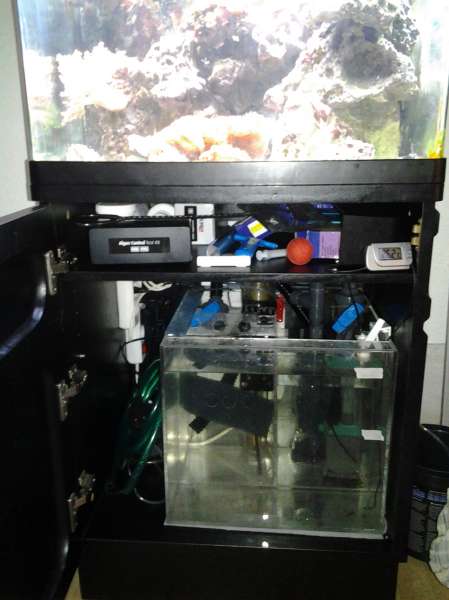 Har også fået sat osmolator og en hjemmelavet dunk til mekanisk filtrering af vand ( eller til kul eller rowafos eller bio pellets eller?) I sumpen, så nu er jeg v at være i mål :y dunken er sat til en y gren på retur pumpe fra sump således jeg kan styrer flowet gennem den m en kugleventil i et lukket kredsløb hvor dette vand løber retur til sump.