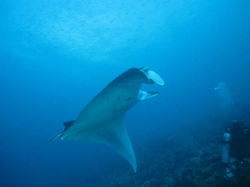 UV Cessna, ja det er ikke løgn, pragtfulde dyr, vi fik også lejlighed til at opleve dem i overfladen med snorkel, vi var lige returneret fra et af dagens dyk, og opdagede mantaer fise rundt i overfladen, så man kunne se "vingespidserne" stikke op over, så vi listede os i vandet og svømmede tæt på, og hold nu kæft et show de fyrede af på os...