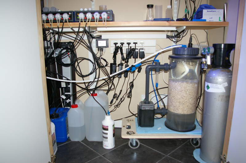 På den tekniske side har jeg bestemt ikke holdt mig tilbage. Helt tilbage fra ferskvandsakvariet har jeg givet den max gas på teknikken. Ud over min interesse for selve hobbyen, pirrer mine interesser inden for teknik og elektronik. Jeg startede med at benytte computerstyring allerede, da jeg havde mit planteakvarie, hvor jeg købte min første GHL Profilux, som dengang kontrollerede Temperatur, Co2 reaktor samt dæmpbare T5 armaturer.