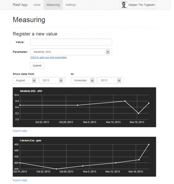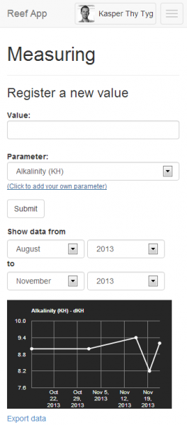 Sitet er klar med den første funktion til at registrere målinger, men det er meningen at den yderligere skal kunne koble disse målinger med hvad man tilsætter fx. ved hjælp af Balling. Dette vil jeg også gerne have input til når det kommer så langt.