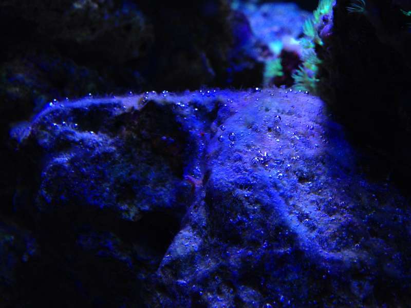Jo .. Store turboer.. Mindre snegle osv.. De æder dem ikke rigtigt .. Ikke synligt ihvertfald! Men hvorfor alle boblerne ..? Kalkalgerne er begyndt på flader hvor der ikke er denne belægning.. Men det er jo klart at det hindrer kalkalgerne på de belagte flader..